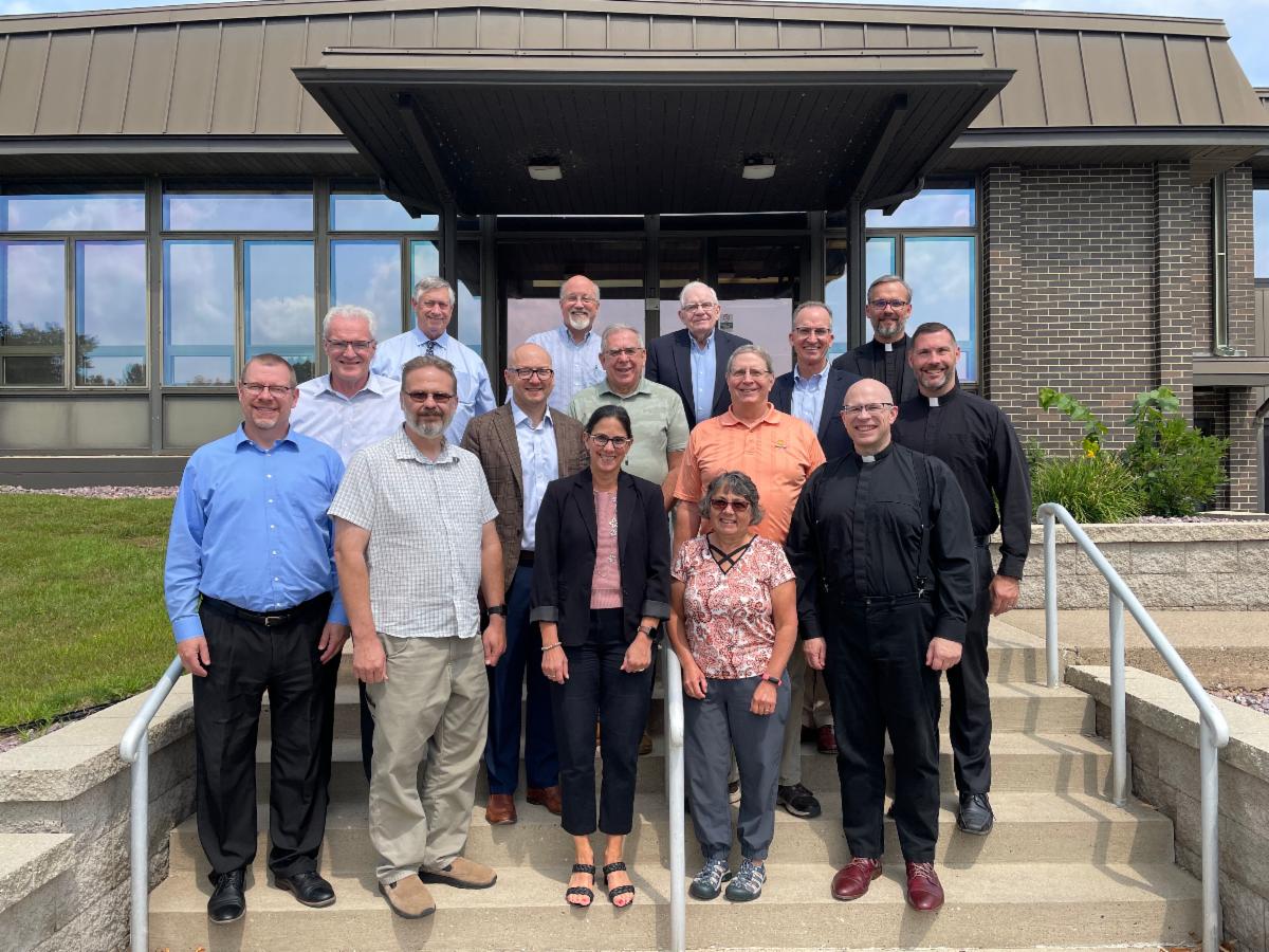 | | We give thanks for those elected to serve on the NWD Board of Directors. This group meets quarterly, supporting the District President as he carries out the Ministry Plan of the NWD. Committee assignments were given, governance responsibilities were reviewed, and the NWD Ministry Plan/Mission/Vision were approved. Keep these servant leaders in your prayers. | | Row 1 – DJ Schult, David McFarland, Lori Kavajecz, Pauline Jerabek, Rev. Ryan Fehrmann–3rd VP. Row 2 – Craig Timm, Bryon Graff, Dwayne Maroszek–District Treasurer, William Zick, Rev. Travis Kleinschmidt–District Secretary. Row 3 – David Mellem, Rev. Don Engebretson–1st VP, Dr. Jeff Nielsen, Rev. Tim Shoup–District President, Rev. Preston Paul–2nd VP. Absent – Rev. Richard Neely Owen, Marie Fenske. | | |