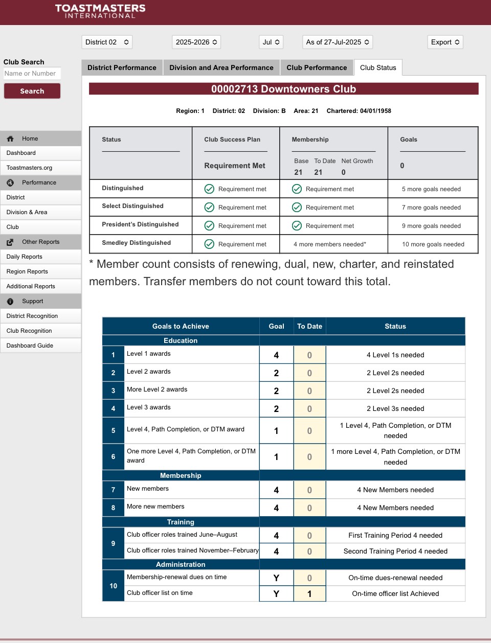 As our District transitions through an important realignment this month, we want to keep you in the loop about what this means for you and your club. Between July 1 and July 28, World Headquarters will be completing tasks that impact club bases, membership records, and Distinguished programs.
