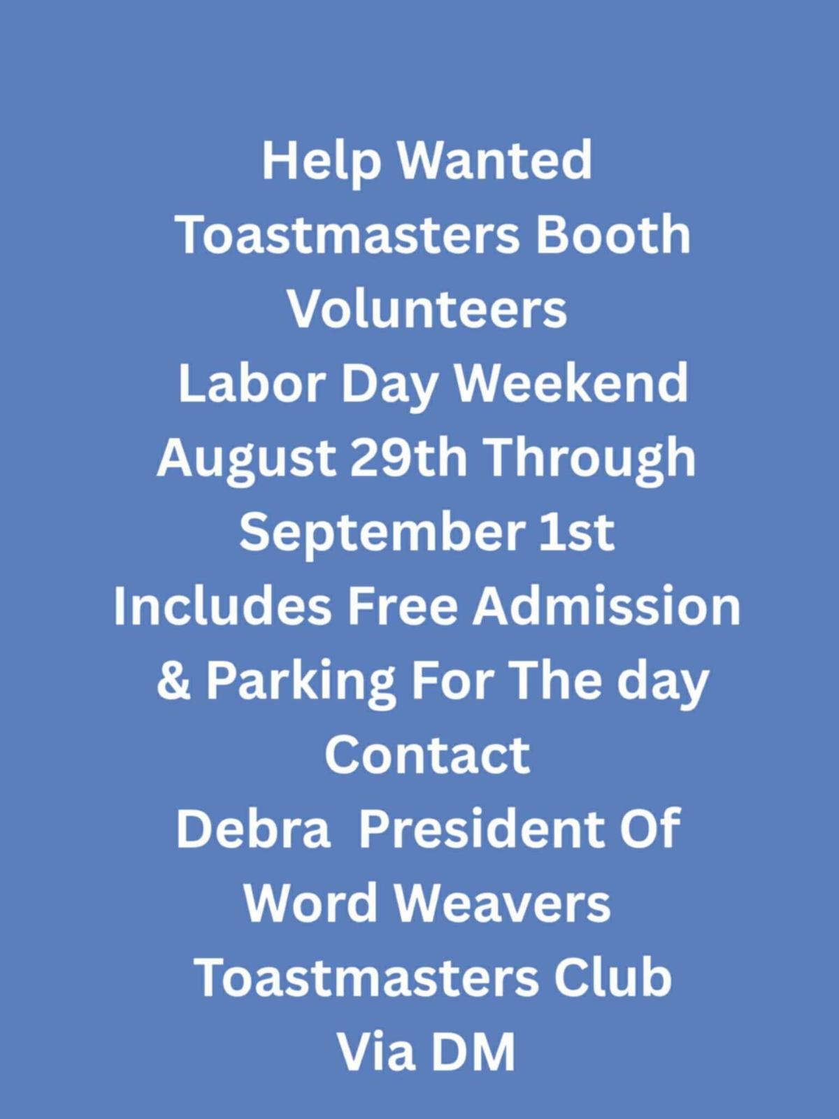 This is an opportunity to share your Toastmasters journey and help shape new clubs. Join in making a difference!