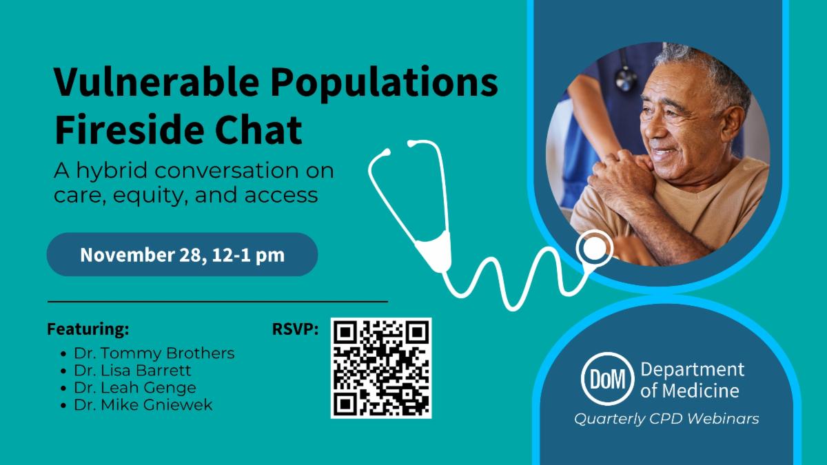 The DoM Continuing Professional Development (CPD) committee invites faculty and clinicians to attend our upcoming Quarterly Webinar: Vulnerable Populations Fireside Chat – A conversation on care, equity, and access.