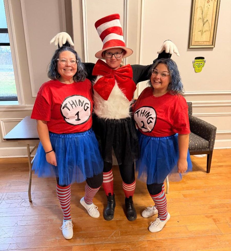 This year's "Best Costume" prize went to Laura Ring, Kaitlyn MacDonald-Comeau, and Tina Neath (above) who came as the Cat in the Hat and Thing 1 and Thing 2, but we also had a great group of Hogwarts students, a "smarty-pants," a "crazy cat lady," and more.