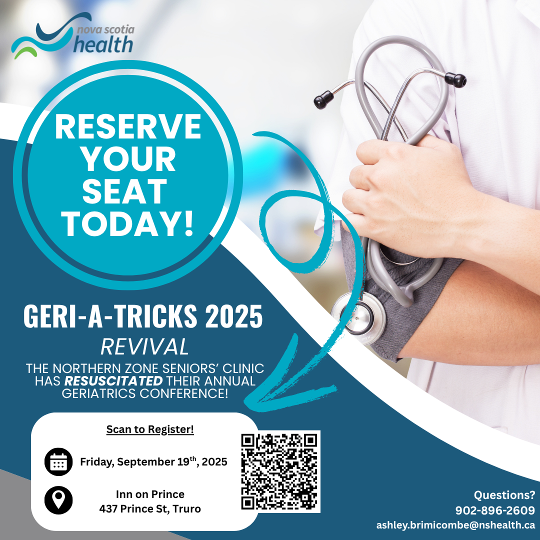 The Northern Zone Seniors’ Clinic is bringing back its popular geriatrics conference with Geri-A-Tricks Revival on Thursday, Sept. 19 at the Inn on Prince Hotel & Conference Centre in Truro.