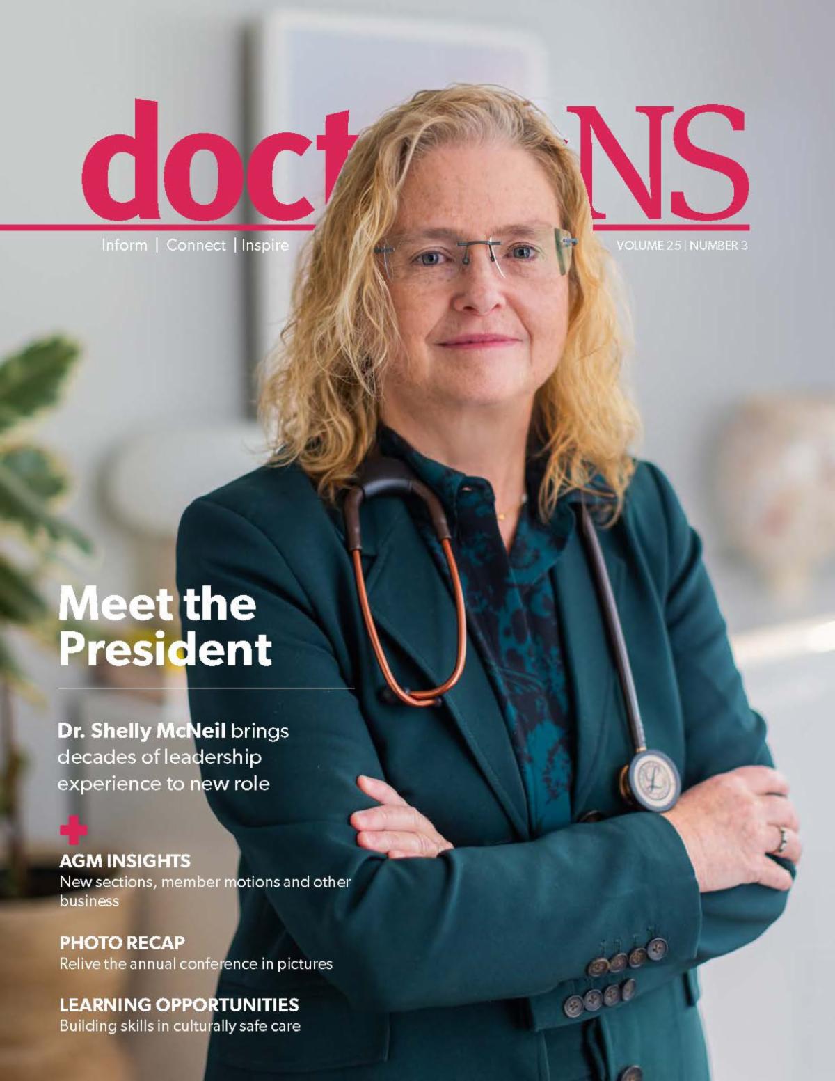 The July/August issue of doctorsNS features our Division of Infectious Diseases Head, Dr. Shelly McNeil, as the new President of Doctors Nova Scotia.