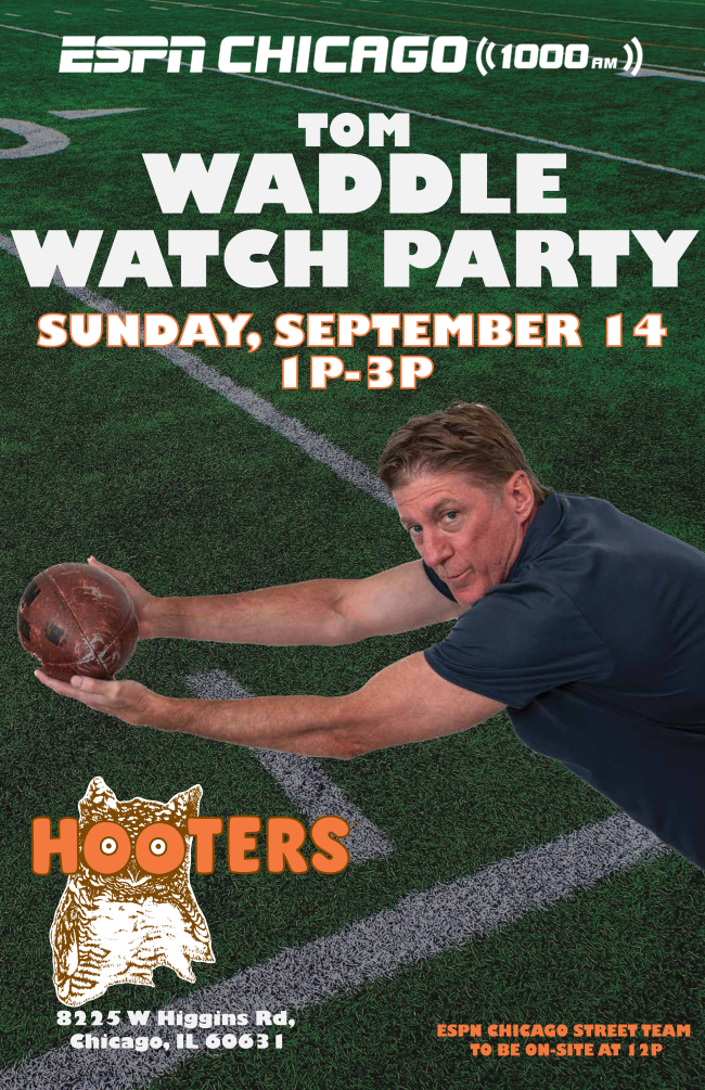 Are you ready to wing it with Waddle?! Join ESPN Host and former Chicago Bear Wide Receiver Tom Waddle at Hooters O'Hare on Sunday, September 14th.