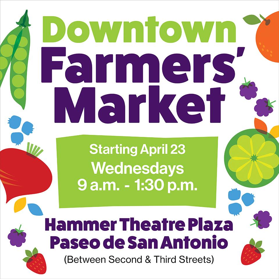 Starting Wednesday, April 23, the Downtown Farmers' Market will take place weekly at Hammer Theatre Plaza from 9 a.m. to 1:30 p.m., featuring a curated lineup of certified vendors offering fruits, vegetables, and hot and prepared food.
