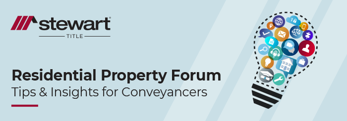 Stewart Title is delighted to continue our Residential Property Forums, designed to give property lawyers practical insights and solutions to the challenges you face every day.