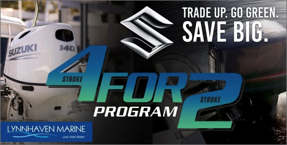 At Lynnhaven Marine, we’re always looking for ways to bring our customers the best in marine technology while also taking care of our waterways. That’s why we’re excited to share Suzuki Marine’s 4-4-2 promotion—a program designed to help boaters upgrade to cleaner, more fuel-efficient 4-stroke outboards while responsibly removing old 2-stroke engines from the water.