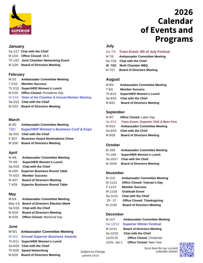 Welcome to a new year with the Superior Chamber of Commerce!