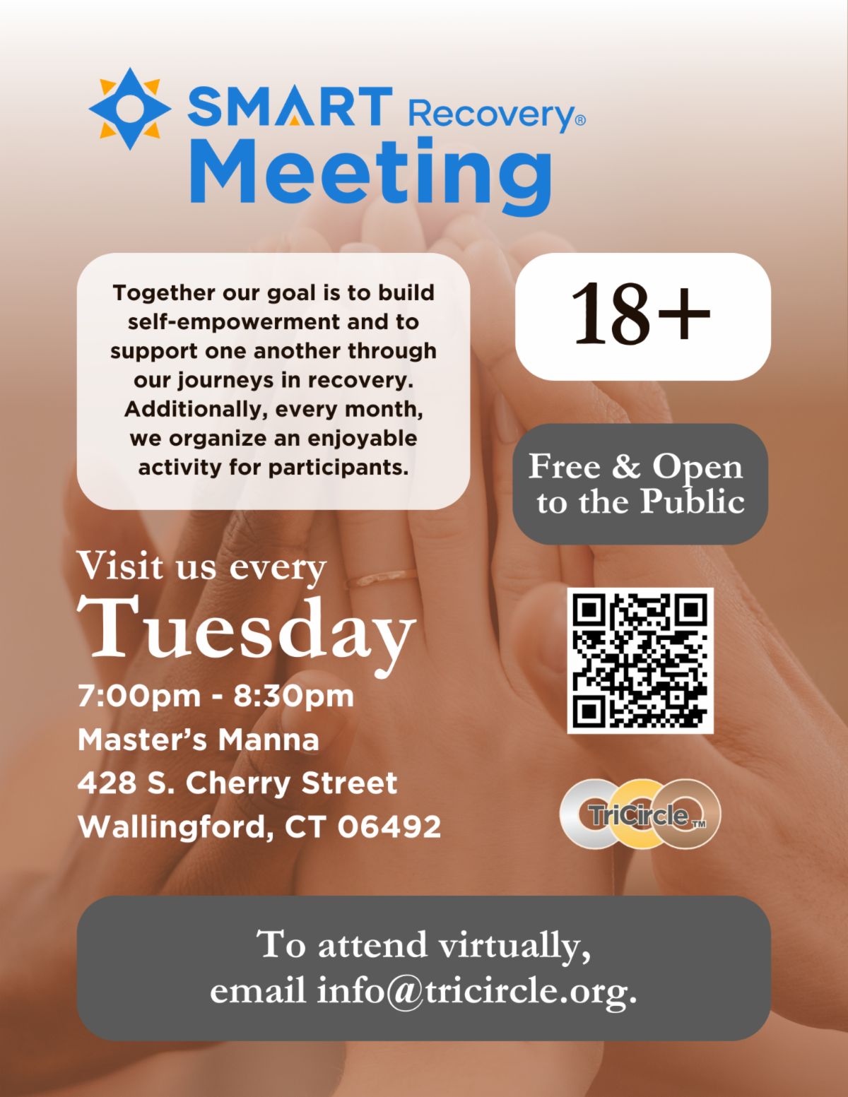 SMART Group Wallingford - Every Tuesday February 3, 10, 17, 24, 7-8:30 pm at Master's Manna 428 S Cherry St Wallingford.