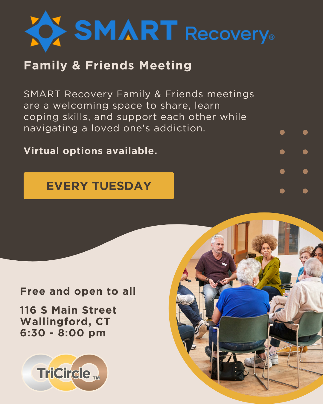 SMART Group Family & Friends Wallingford - Every Tuesday February 3, 10. 17, 24 - 6-7:30pm 116 S Main St (Rear entrance)