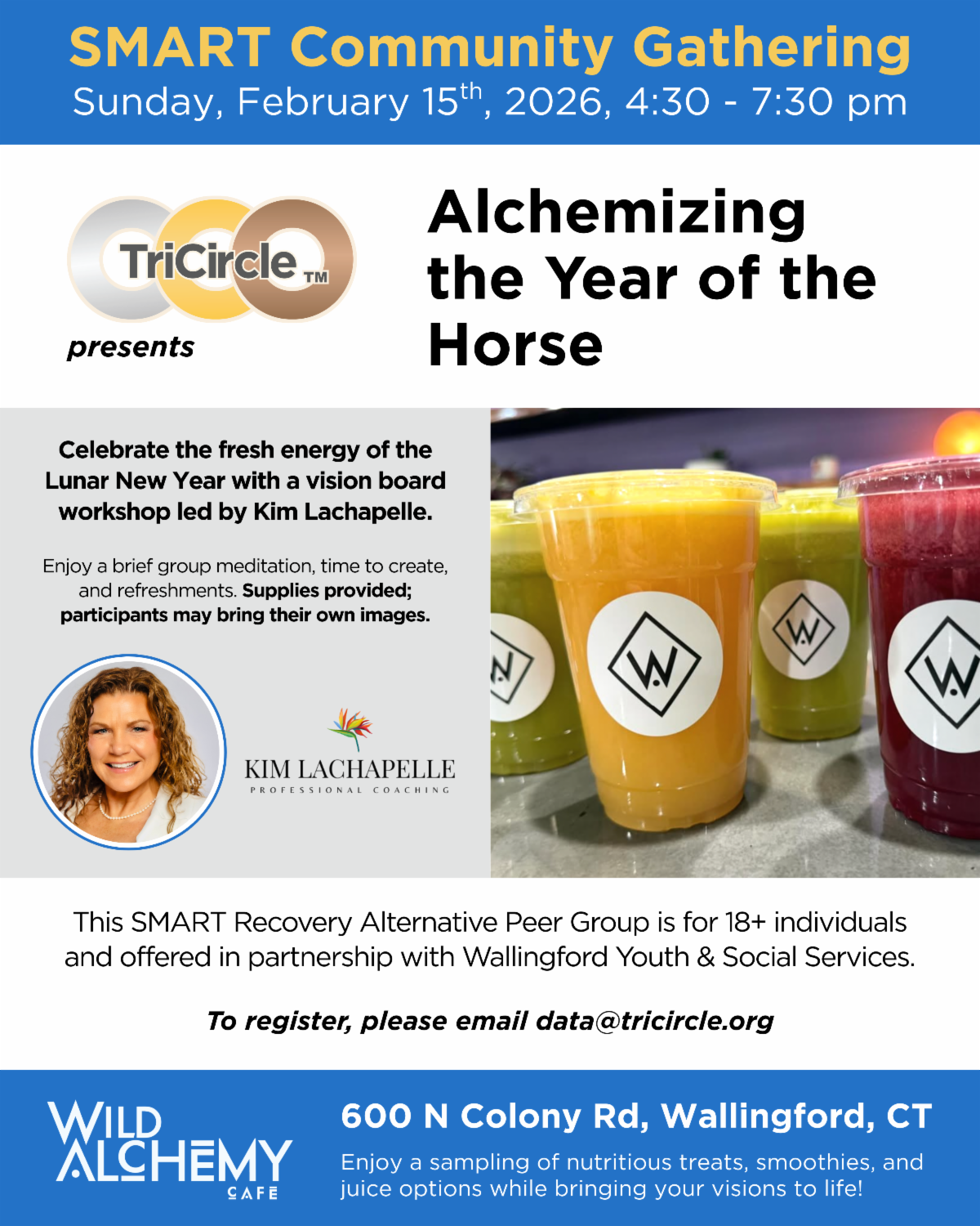 SMART APG Vision Board & Meditation - February 15, 4:30pm-7:30pm Wild Alchemy 600 North Colony Road Wallingford - Alchemizing the Year of the Horse Registration required: data@tricircle.org. See below or Click here for flyer