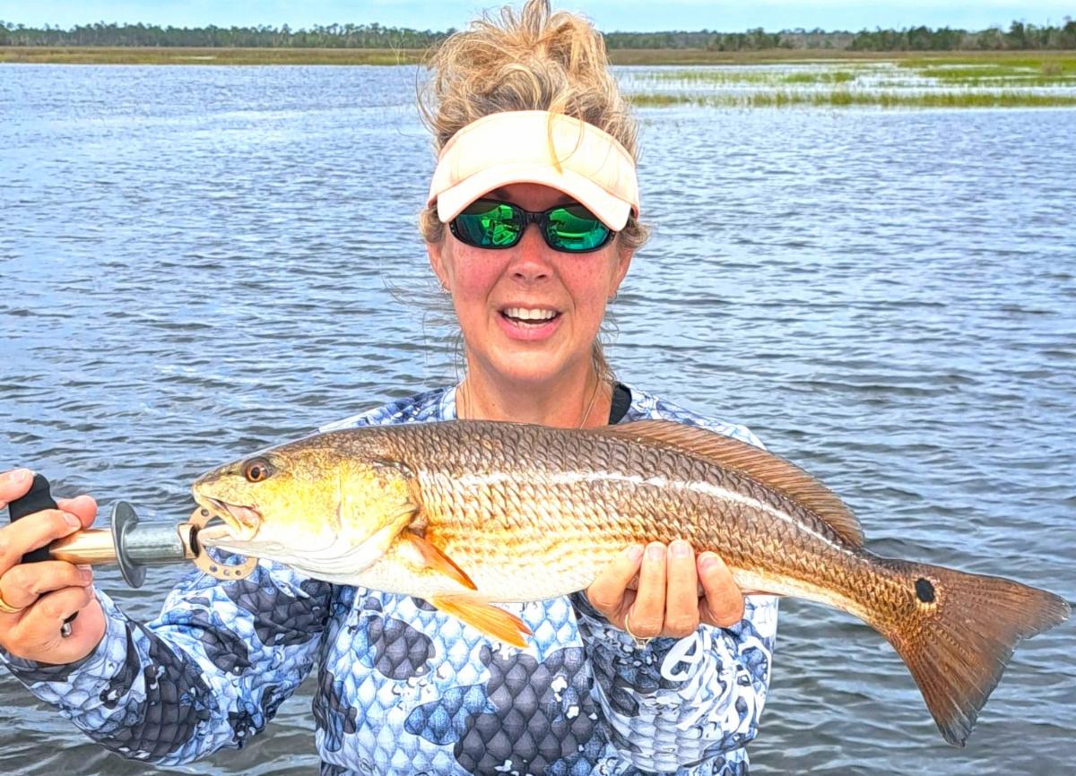 While out on the water with Capt. Chris Chico Graham of OTF Inshore Charters, Jake caught this the perfect little redfish.