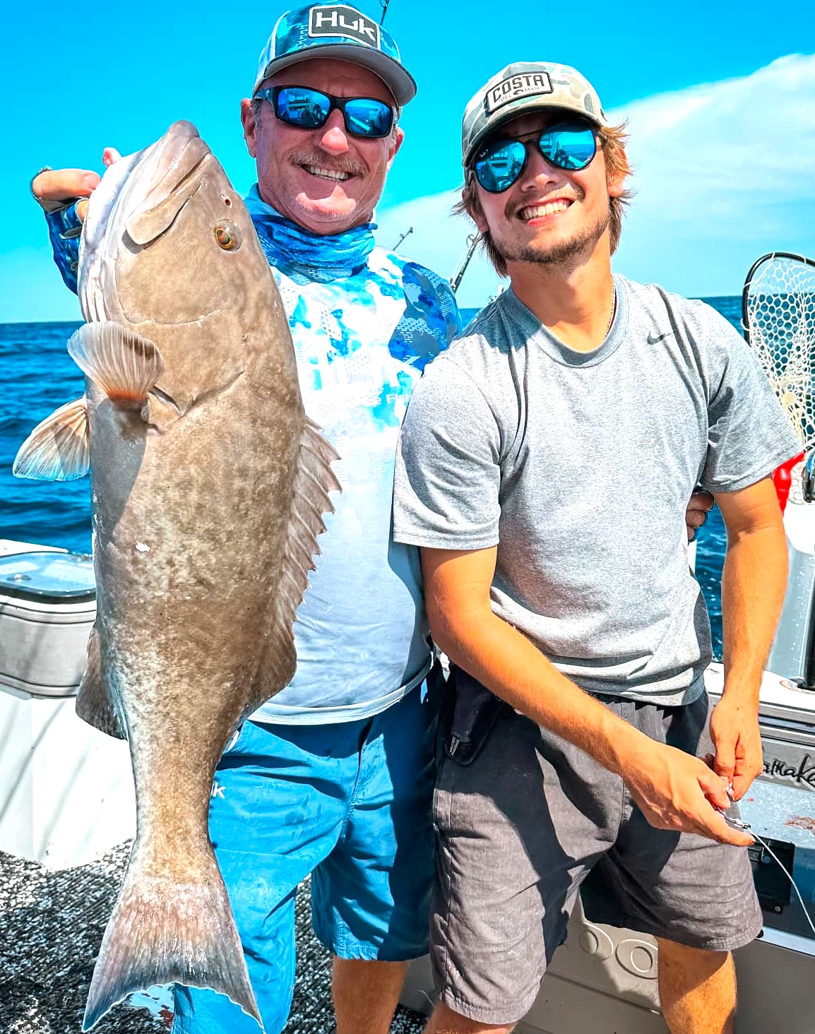 Steve Bradford displays a nice gag grouper with first-mate, Zach Bunkley, of Chase-N-Fish Charters.