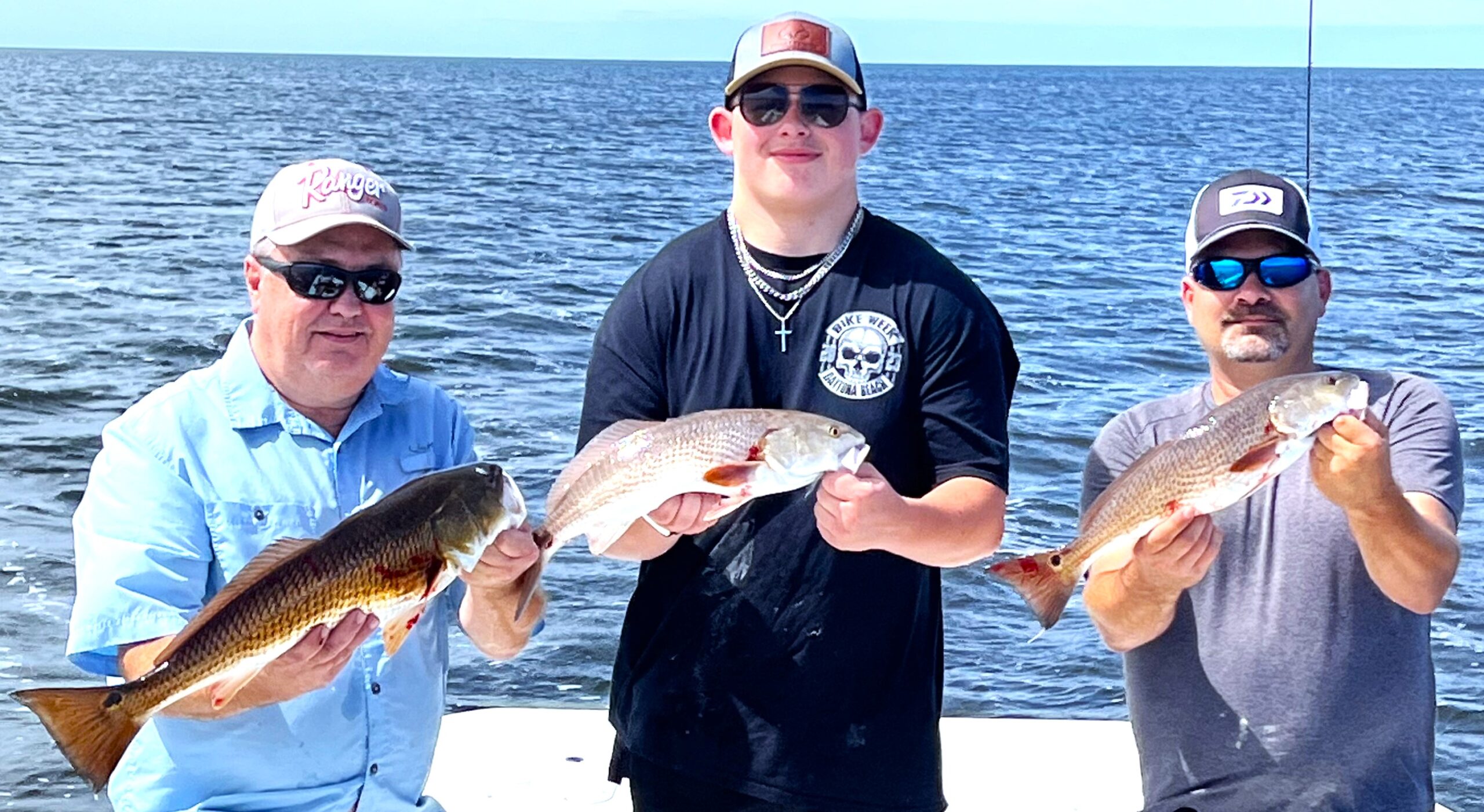 Mike, Mark, and Jake landed three redfish at once while fishing with Capt. Chris Chico Graham.