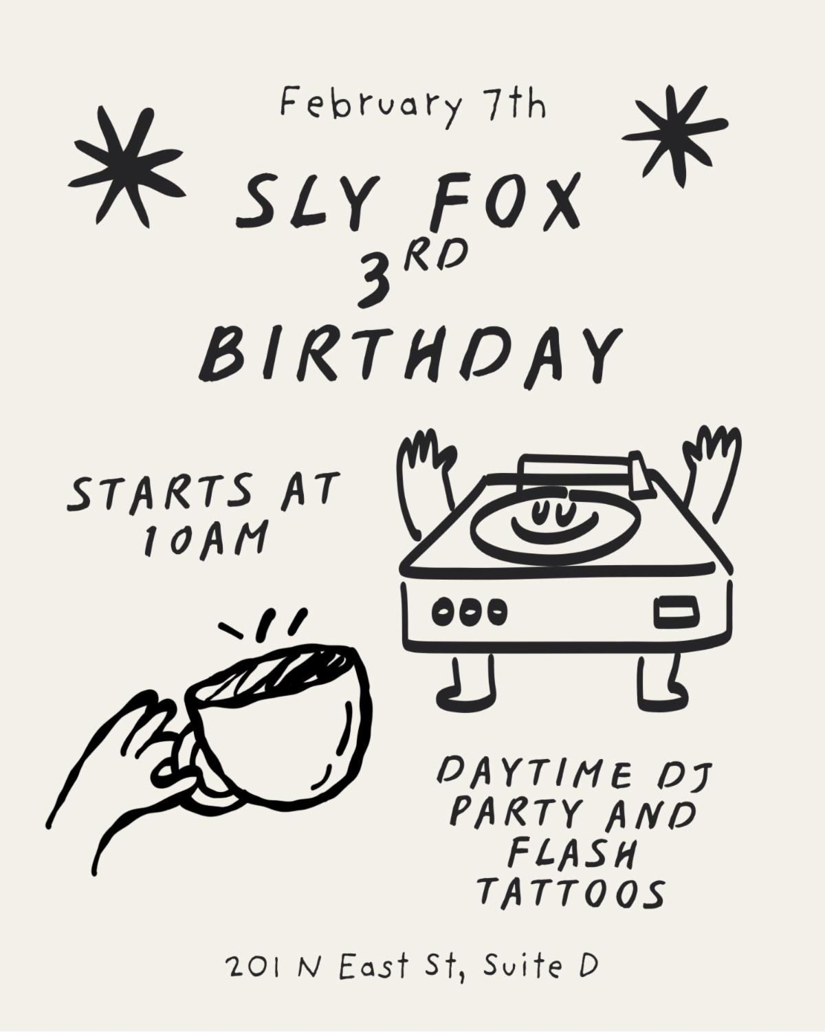 Look forward to partying on the deck like a daytime coffee club experience with a DJ and a flash tattoo artist! There will be coffee (obviously), stickers, and giveaways to celebrate our 3rd year in the community! Thank you for all your continued support and we look forward to celebrating with you!
