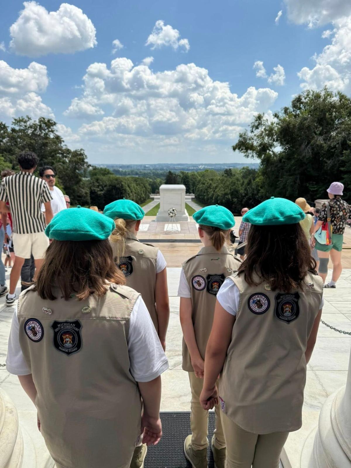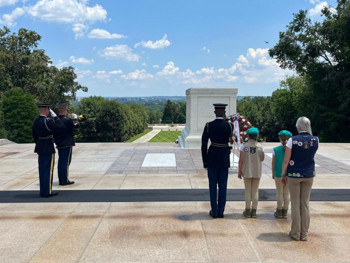 Over the 4th of July weekend, Troop 40889 had the incredible honor of laying the wreath at the Tomb of the Unknown Soldier at Arlington National Cemetery. This solemn ceremony marked a proud milestone in the girls’ Bronze Award project.
