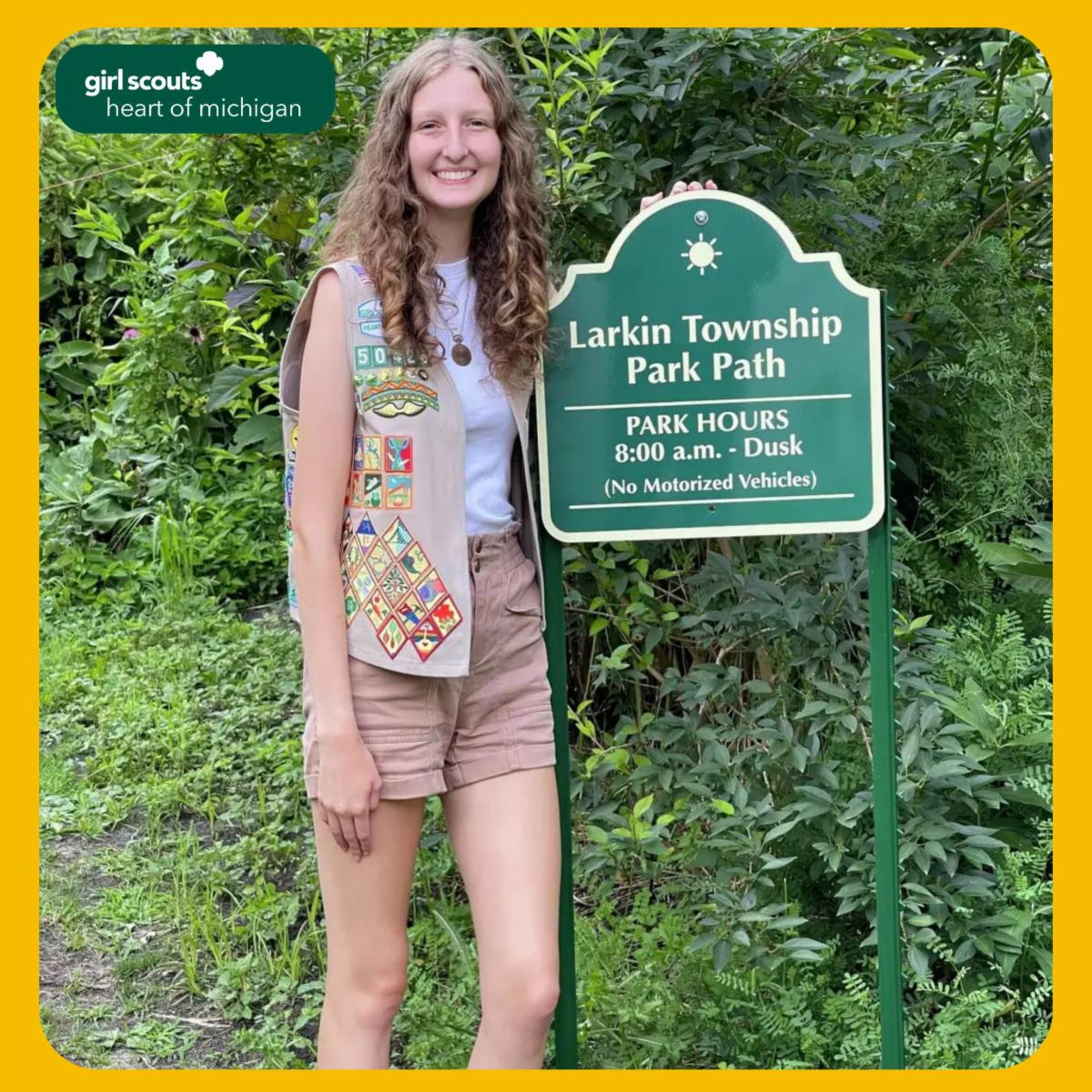 Through determination, Zailey ensured that the township board would continue to maintain the path and create a sustainable park path for everyone. Due to her hard work and dedication, Zailey received the Girl Scouts of the USA Gold Award Scholarship for our council.