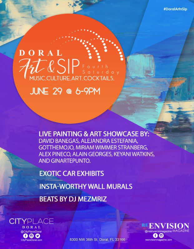 CityPlace Doral continues new cultural series. In partnership with ReEnvision Art Gallery, CityPlace Doral announces the next installation of Doral Art & Sip, a monthly art and culture-infused event reoccurring each fourth of the month.
