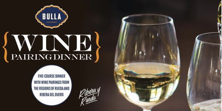 Join us at Bulla Gastrobar located in Downtown Doral for a Spanish Wine Dinner that will inspire your senses by bringing the taste of Spain to our Doral location. Enjoy a private five-course wine dinner prepared by our Executive Chef. Meet the Ribera y Rueda US Ambassador, one of the most prominent wine regions in Spain who will be pairing each course with a wine from the historic region.