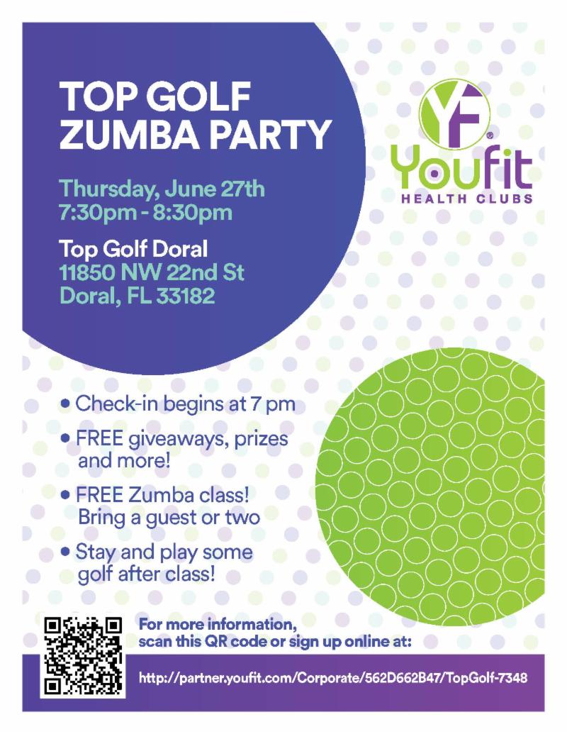 Thursday, June 27th, 7:30 pm. Free Zumba class! Bring a guest or two!