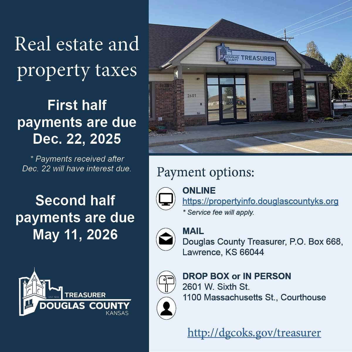 The Douglas County Treasurer’s Office mailed real estate and personal property tax bills in late November and the first half payment is due today, Dec. 22.