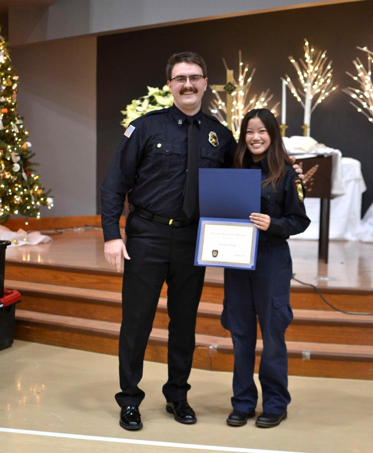 | | Capt. Sam Goodwin, left, is pictured with Paul Earnest who received the Recruit on Fire Award for the highest number of fire incident responses by a recruit. | | Capt. Sam Goodwin congratulates Joshua McGinn on receiving the Community Impact Award. He spent the most hours providing public education in the community. | | Sam Goodwin is pictured with recruit Elaine Ching who received the Station Squatter Award for most ride-out and training hours. | | From left, Chief John Mathis, Ed Steele, Deputy Chief Dennis Snodgrass, David Wulfkuhle, Battalion Chief Michael-Shayne Baxter and Devon Kissinger were recognized for providing more than 25 years of service. Not pictured: Mike Baxter, Richard Clark and Kari Wempe. | Sheriff Jay Armbrister, left, and Undersheriff Stacy Simmons, right, are pictured with the recipients of an Operations Commendation Award for bringing an armed and dangerous suspect into custody safely on May 18, 2025. From left are Lt. Robert Berryman, Deputy Payton Schaefer, Deputy Tyree Clark, Master Deputy Austin Abram and Deputy Victor Torres. Not pictured for this award is Master Deputy Bryon Revell. | Sheriff's Office presents Winter Awards | |
