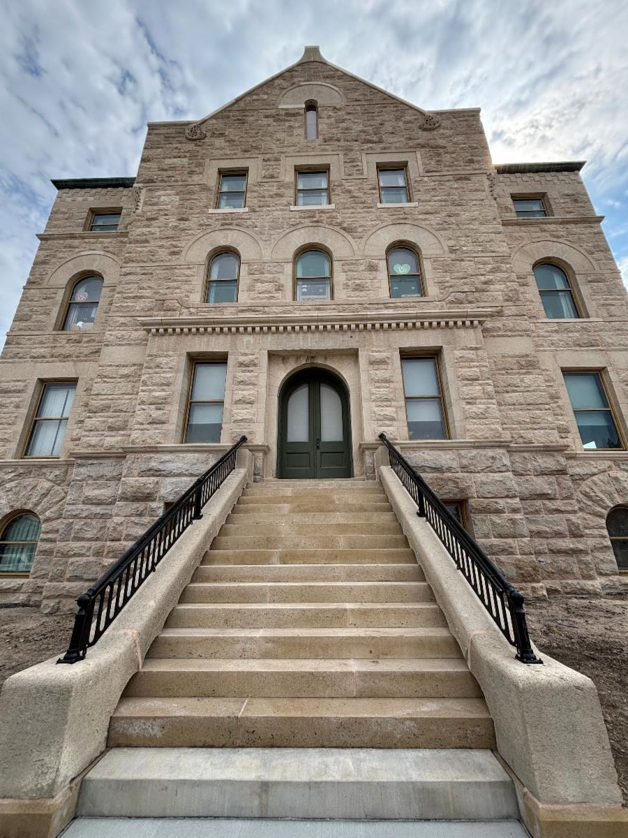 Crews began waterproofing the building’s foundation in fall 2023. In 2024, work continued with cleaning, repairing and replacing stones on the exterior.
