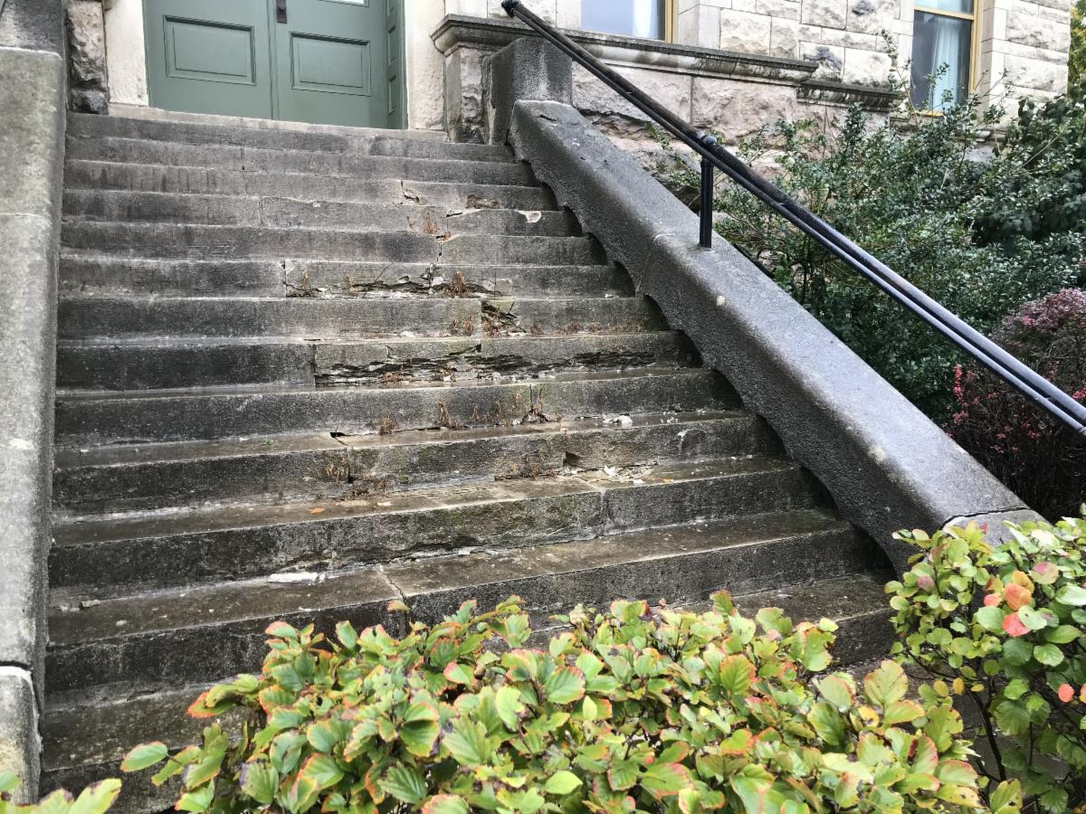 One example is the reconstruction of the north exterior stairs, which were replaced because of their severe deterioration and historic significance. While the entrance will not be reopened, the stairs will now offer improved public access for uses such as seating and photography.