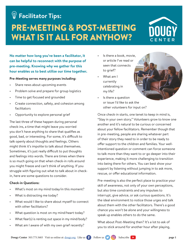 By Sarah Levy, Dougy Center Facilitator and past guest on Grief Out Loud