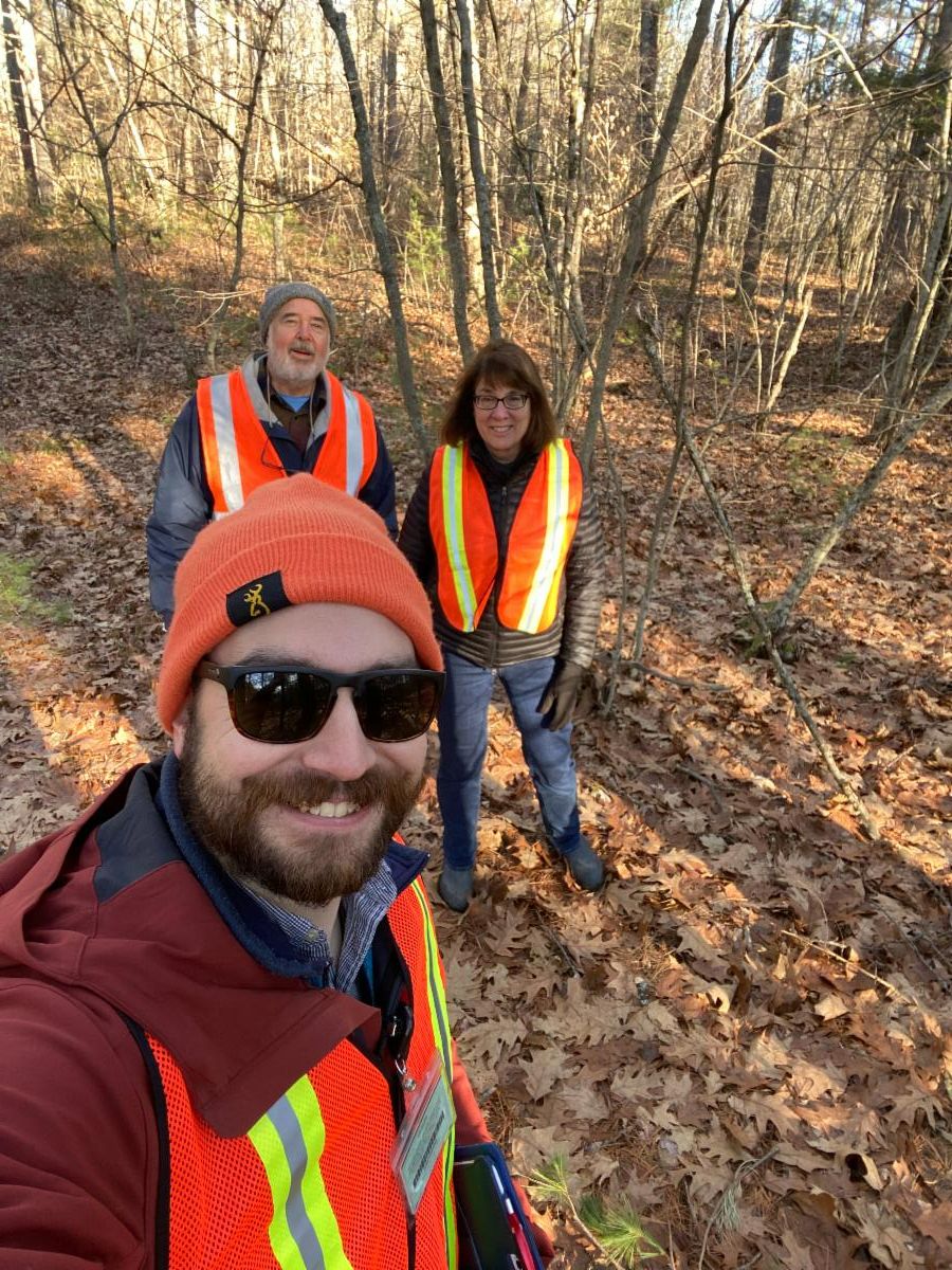 Pictured here, conducting the final easement monitoring of 2022, are Open Lands Committee members and Resilience Manager Jackson Kaspari.