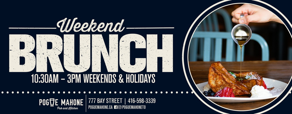 Get your brunch on every weekend at Pogue Mahone Pub & Kitchen! Enjoy $5 build your own Caesars, and $5 mimosas till 3pm - it's the perfect start to the weekend!