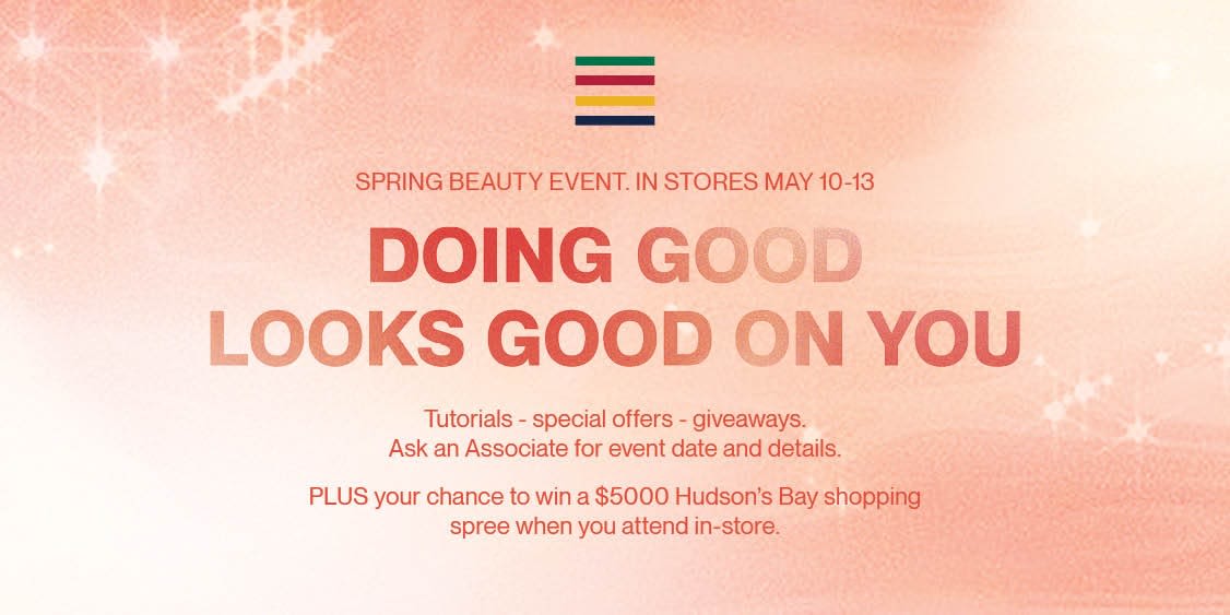 Buying a $5 ticket helps a worthy cause The Hudson's Bay Foundation Charter for Change. and receive a 15% off* savings on beauty & fragrance purchases throughout May 13.