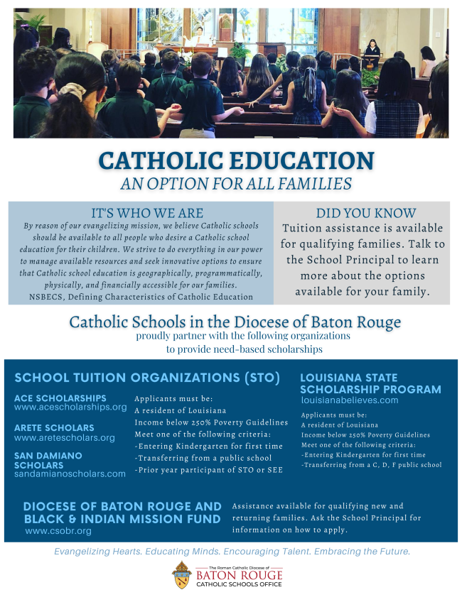 Each year during the Catholic Schools Weeks Liturgy, the donated supplies are presented to Catholic Charities.