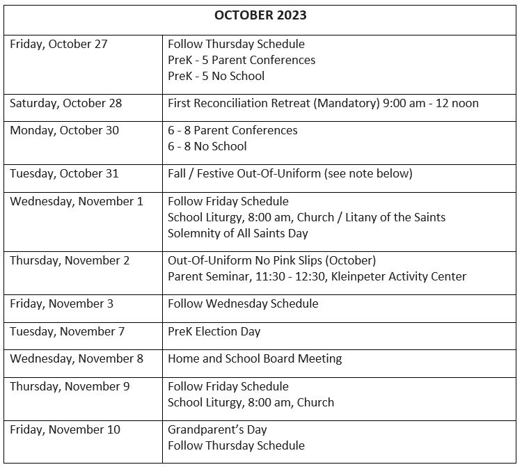 This Sunday, October 29, is our last day of home football games, and our 8th graders last time to play on their home field. Make plans to come enjoy a beautiful day at the field and show your support for all the boys, especially our 8th graders! The schedule for the day is: