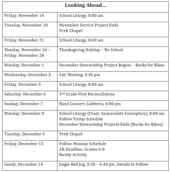 Thank you to all students that participated in the Performing Arts performance including liturgical dance, bell choir, boys activity choir, girls chorus, Advanced Band II, 5C homeroom class and many more!