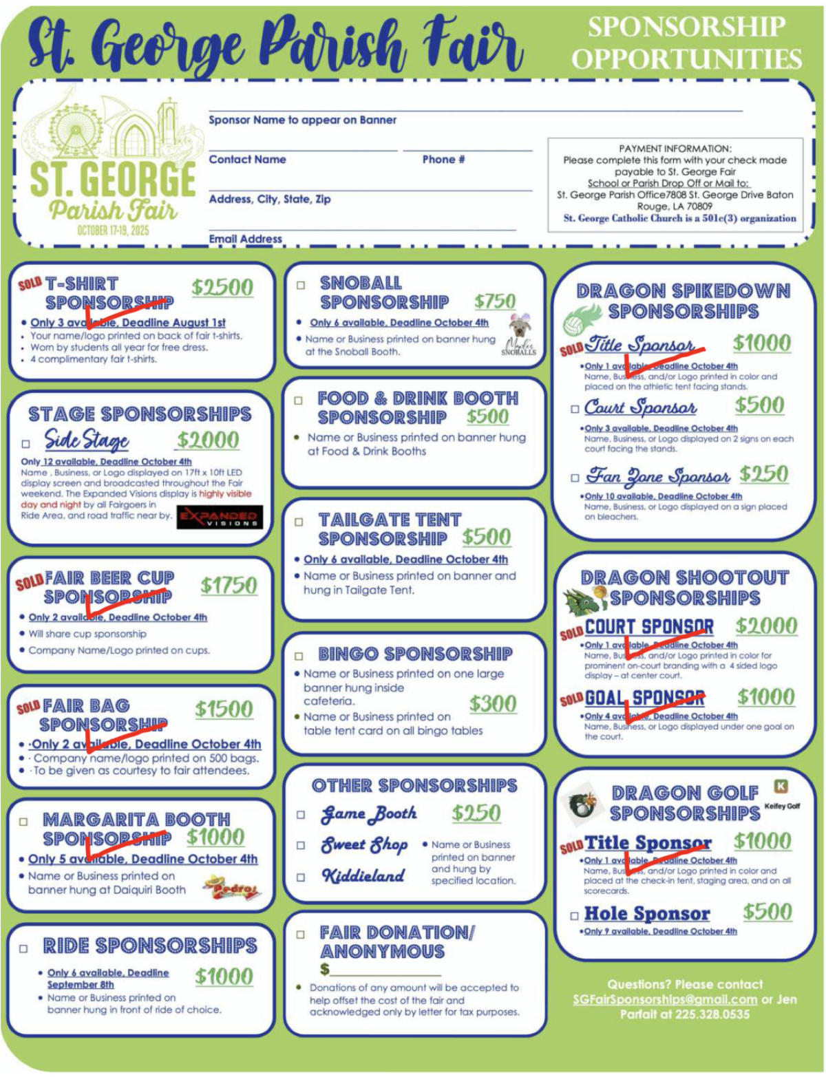 St. George Theme Basket Raffle Theme Basket Sponsors: