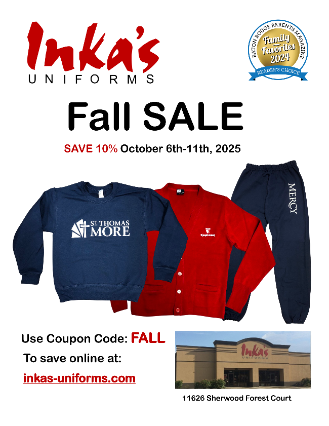 By participating in this stewardship project, we aim to develop a sense of community by contributing to our St. George Parish/School Fair. Each grade level is assigned a theme to purchase items for baskets of prizes to be raffled at the annual St. George Fair.