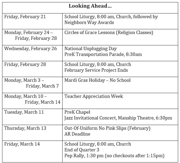 To say we live in a connected, high-speed world is a bit of an understatement. Sometimes, we can miss what’s happening right in front of us while we are hyper-connected to friends, family, and even strangers on social media. The National Day of Unplugging was created to spend time away from our screens for 24 hours and instead spend time in nature, connecting with loved ones, and relaxing. In our mass this morning, we learned that during this time of Lent, we need to be mindful and unplug from all the things distracting us daily to personally connect to God and the things that mean the most to us.