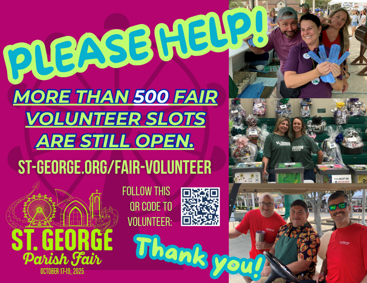 The countdown is on for our beloved St. George Fair – October 17-19! This exciting tradition is a highlight of our parish and school community, but it can only happen with the help of many hands and generous hearts.