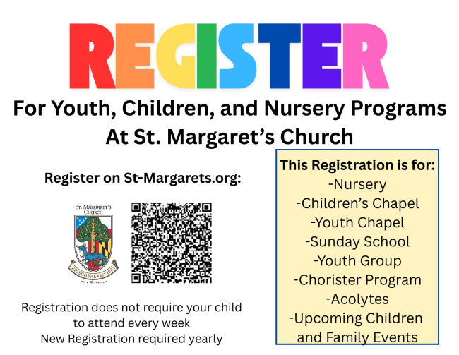 **Sunday Service Schedule 7:30am, 9am, and 11:15am, Nursery from 8:45-11:15, Coffee hour between 9am and 11:15am services in the Parish Hall, Sunday School at 10:15am in the Formation Building