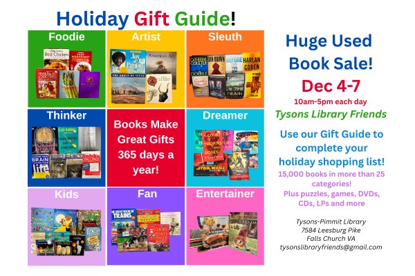 - Tomorrow - Dec. 7: Tysons Library Quarterly Book & Media Sale