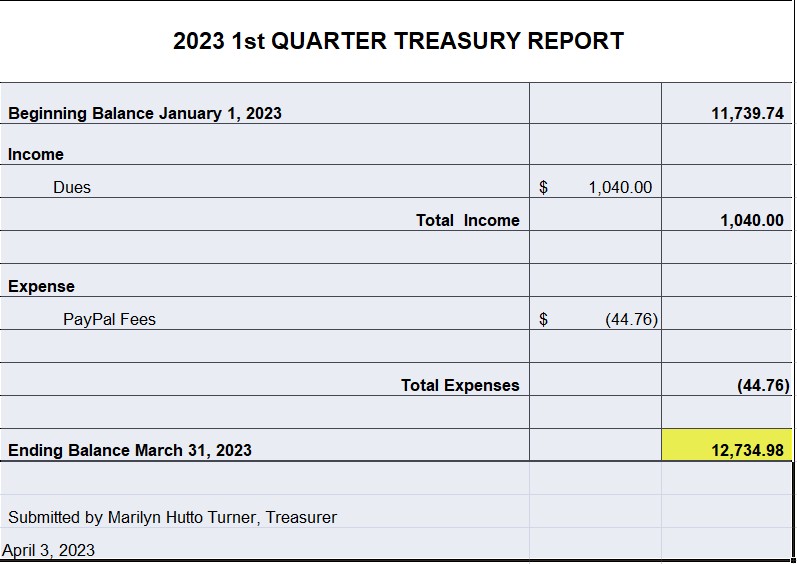 NOTE: The board decided years ago that it was important to maintain a minimum bank balance of at least $10,000 so that future reunions can be planned.