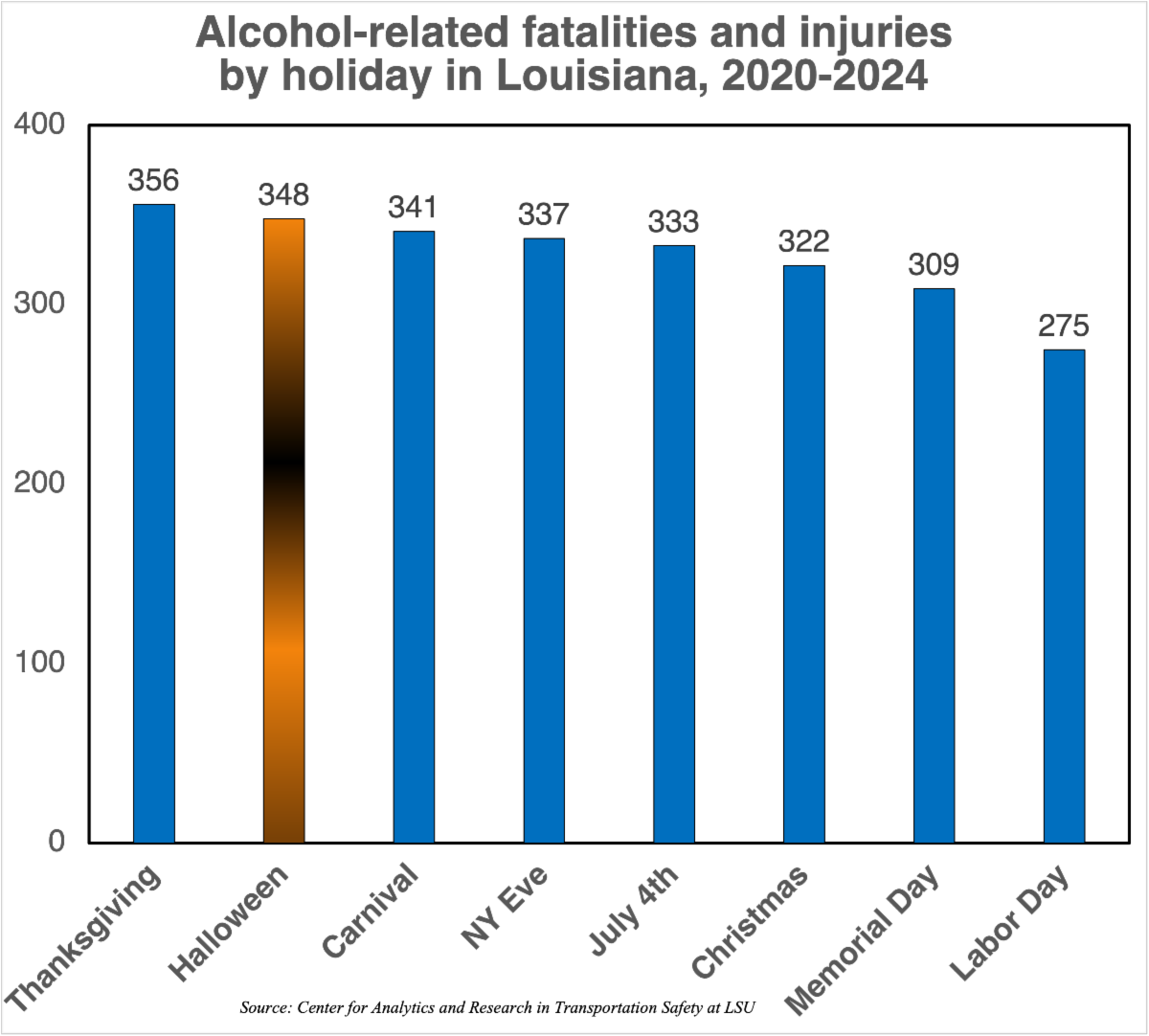 “Since 2020, more than 3,000 people in Louisiana have been injured or killed in a crash during the Halloween holiday, ” Freeman said. “Too many of those people were in a crash that involved a driver who had been drinking.”