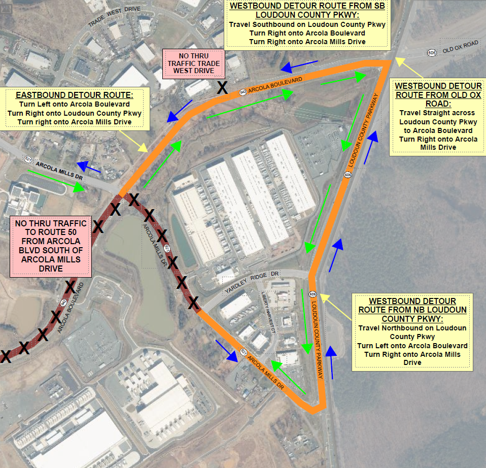 The County worked with VDOT, LCPS, and LCSO to make sure notifications went out and signage was in place before the detour. Traffic that currently uses Arcola Mills to access Loudoun County Parkway, and vice versa, can still do so during the detour period by using the newly constructed portion of Arcola Boulevard. Yardley Ridge Drive will still be accessible either directly from Loudoun County Parkway or on the southern side of the closure area. I’ll keep you posted should anything change.