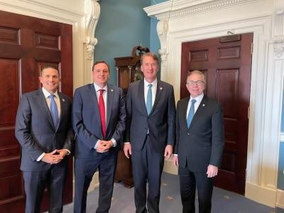 | | Metro has a significant budget shortfall. As Finance Chairman of the Metro Board, I have been heavily involved in preparing plans both to help close the gap with internal savings and to obtain new funding from our partners in D.C., Maryland, and Virginia. Last week, I joined General Manager Randy Clarke and Board Chairman Paul Smedberg in Richmond to visit with House and Senate Leadership and Governor Youngkin. We had very productive meetings, and all affirmed their support for Metro as a catalyst for economic development and an essential tool to reduce congestion in the DMV. I also had the opportunity to visit with some of our Loudoun delegation on various issues. | (Left to right) Metro GM Randy Clarke, myself, Governor Glenn Youngkin, and Metro Board Chairman Paul Smedberg | I will be holding my next Dulles Direct Town Hall meeting on the evening of Monday, February 26 at 7:00 p.m. in the auditorium at Mercer Middle School (42149 Greenstone Dr.). I will be focusing on retail in our area and joined by representatives from Rappaport (South Riding Market Square and Cedar Terrace) and Beatty (Dulles Landing) to discuss their developments and future planning. I will also be providing updates on the proposed FY25 Budget, giving an overview of ongoing road and infrastructure projects, and taking questions from those in attendance. If you can't make it, the event will be livestreamed on my Facebook page. I look forward to seeing you there! |
