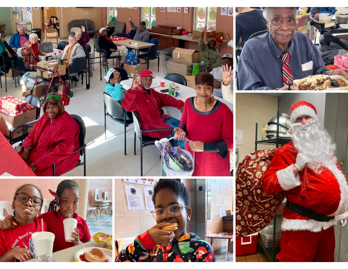 Dee McCarron-Perciavalle, a former Dumas Wesley Board Member, helped make the holidays brighter for dozens of seniors participating in Dumas Wesley’s Senior Activities for Independent Living (SAIL) Program. For over a decade, McCarron-Perciavalle has led a holiday drive with the help of her friends, who collectively “adopt” seniors in the program each holiday season. Participants also enjoyed a festive holiday meal courtesy of The Joseph Project Food Pantry, entertainment from Dumas Wesley Board Member Peyton Clarkson (as Santa Claus) and the Three Friends Trio, as well as activities led by former board member Sonsherraye Gowder.