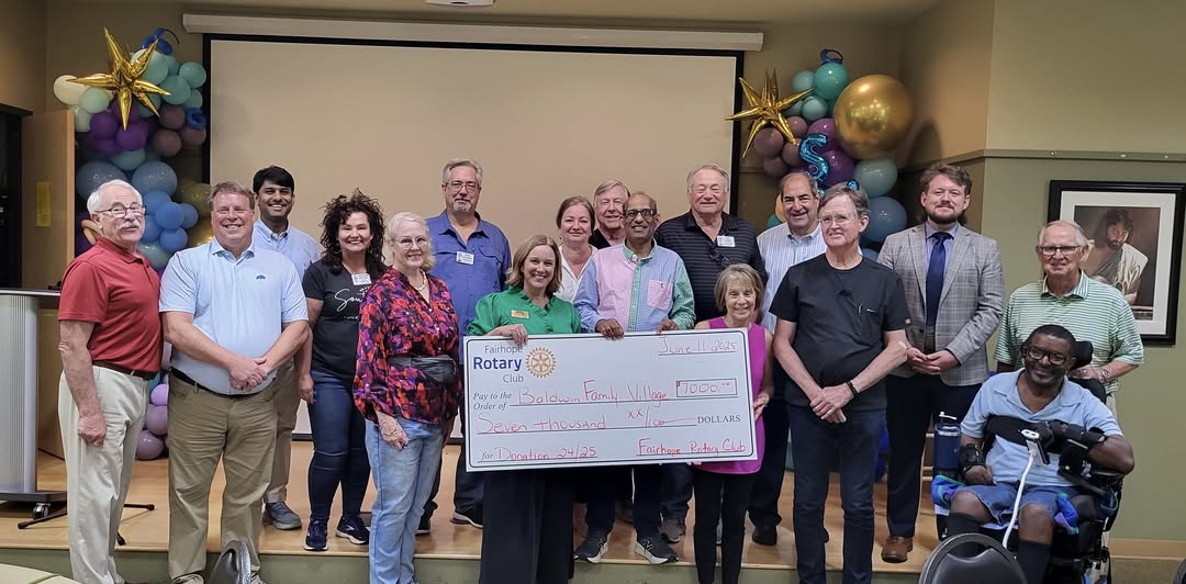"The Fairhope Rotary Club is proud to support the Baldwin Family Village in creating a safe space where individuals in crisis can find housing and life’s essentials," said Trinka Brabston, Fairhope Rotary Gifts & Grants Committee Chair. "Our contribution reflects our ongoing commitment to serving those in need and making a meaningful difference in the lives of our neighbors."