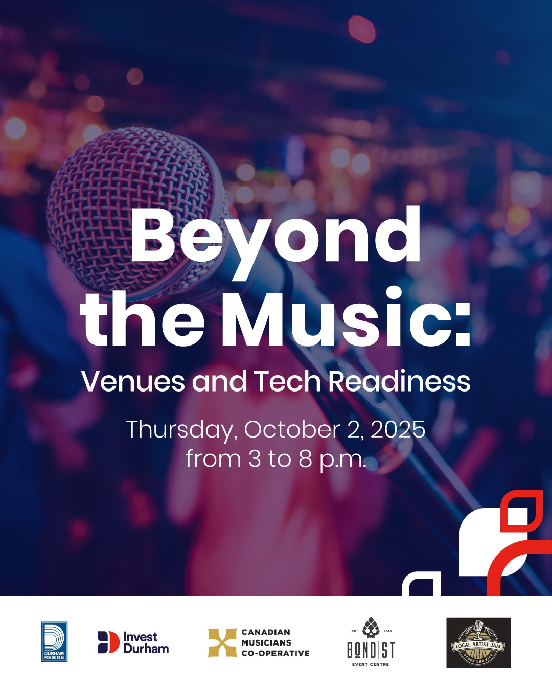 This Beyond the Music opportunity was created in partnership with Invest Durham, the Canadian Musicians Cooperative, BOND|ST Event Centre and the Local Artist Jam team. Registration is required and spots are limited.