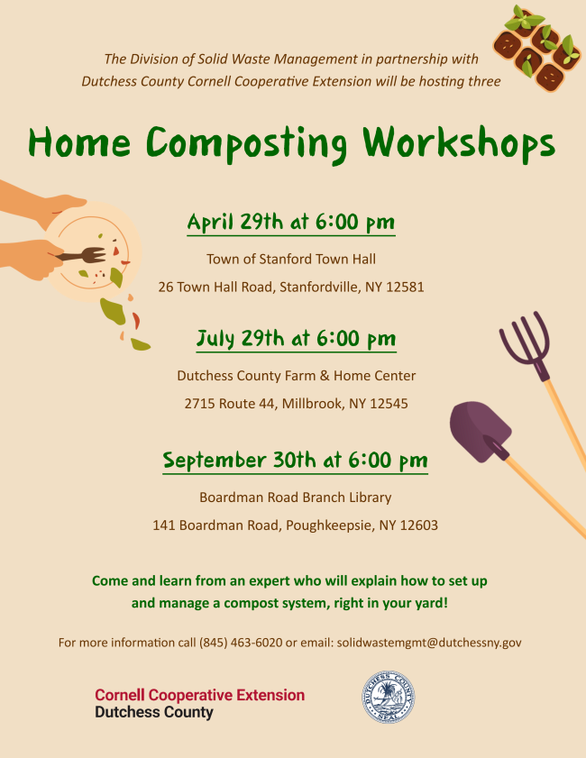 - Contact CCE Dutchess County Hotline for soil testing or gardening advice. https://ccedutchess.org/gardening/horticulture-diagnostic-lab