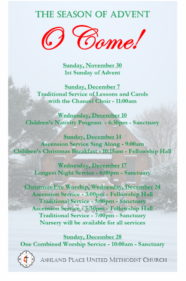 December 10: Children’s Nativity Program - 6:30 pm Sanctuary